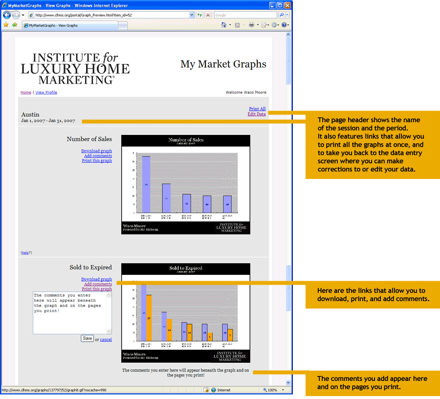 Screen 1: Your Home Page Below is the homepage for My Market Graphs. This is what you see when you log in.