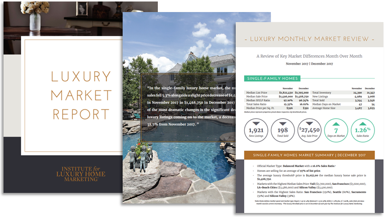 - Luxury Market Report - Developed by REAL Marketing, the Institute's Luxury Market Report helps members gain insights into North American market trends and provides monthly analysis for more than 40 luxury markets in the United States and Canada.